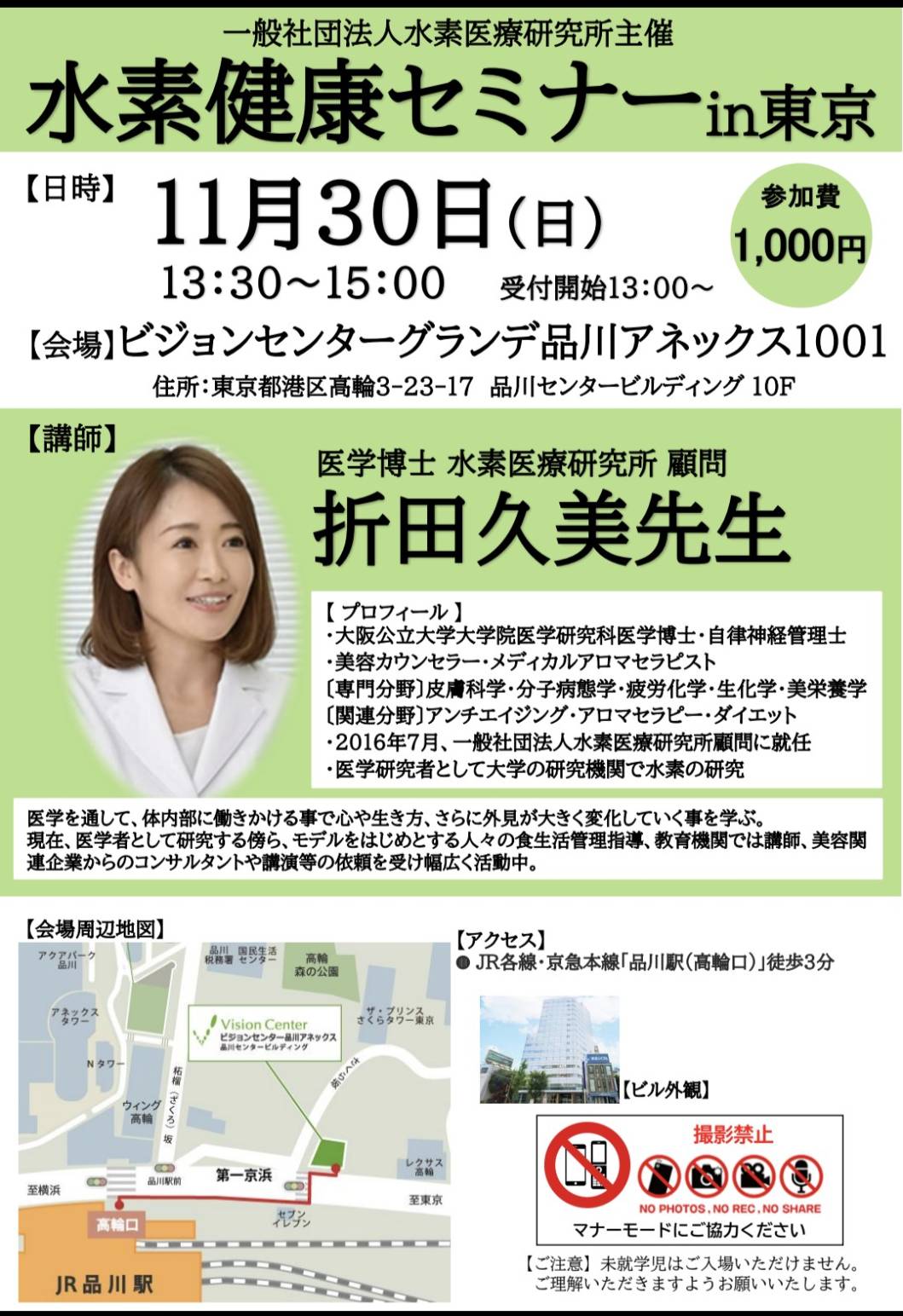 【東京】水素健康セミナー 11月30日㈰開催のお知らせ